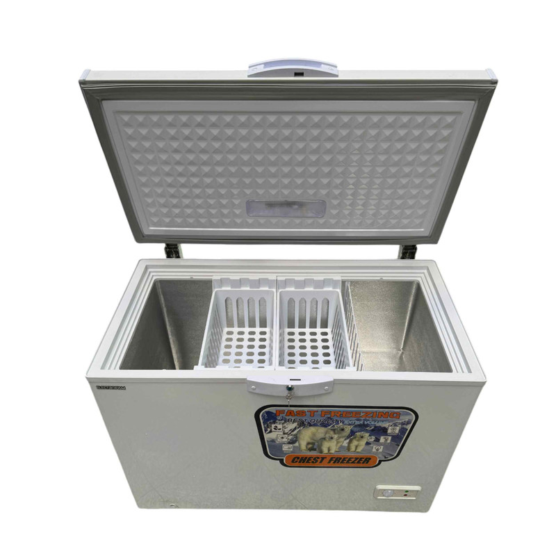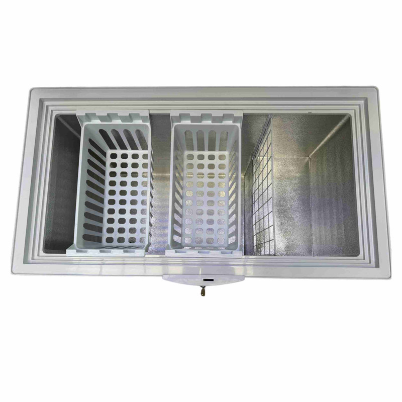 فریزر صندوقی افقی تک درب الکتروفام مدل EM-270 یک محصول جذاب و کار آمد مناسب برای استفاده در فروشگاه ها، مکان های تجاری و حتی خانه است. طول، عرض و ارتفاع این محصول به ترتیب 110، 59 و 86 سانتی متر است. این محصول به دو قسمت با دو سبد تقسیم شده که قسمت بزرگ به عمق 63 سانتی متر و قسمت کوچک تر به عمق 36 سانتی متر است. تنظیم دما فریزر در پایین این محصول قرار گرفته است که ولوم از عدد 0 تا 7 نمایش می دهد...
