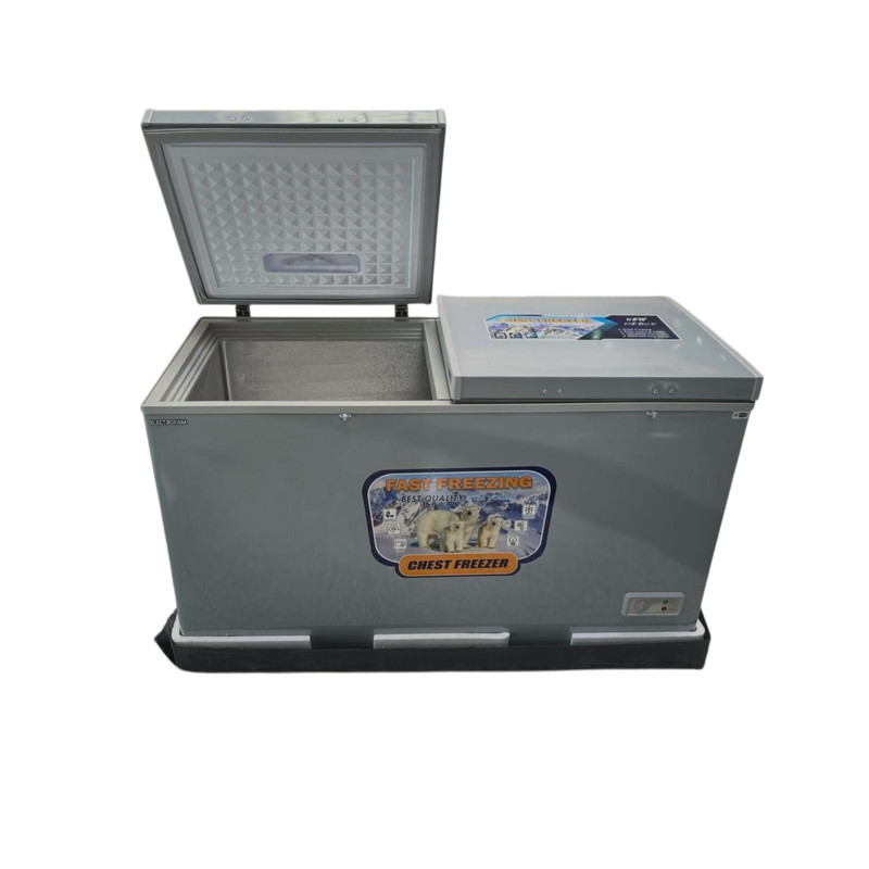 فریزر صندوقی افقی دو درب الکتروفام مدل CF-200-400 یک محصول جذاب و کار آمد مناسب برای استفاده در فروشگاه ها، مکان های تجاری و حتی خانه است. طول، عرض و ارتفاع این محصول به ترتیب 140، 60 و 82 سانتی متر است. این محصول دارای سه سبد است که عمق قسمت بزرگ به عمق 63 سانتی متر و قسمت کوچک تر نیز به دلیل قرار گرفتن موتور به عمق 36 سانتی متر است. تنظیم دما فریزر در پایین این محصول قرار گرفته است که ولوم از عد...
