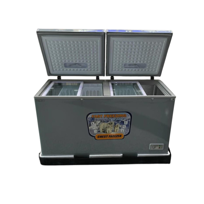 فریزر صندوقی افقی دو درب الکتروفام مدل CF-200-400 یک محصول جذاب و کار آمد مناسب برای استفاده در فروشگاه ها، مکان های تجاری و حتی خانه است. طول، عرض و ارتفاع این محصول به ترتیب 140، 60 و 82 سانتی متر است. این محصول دارای سه سبد است که عمق قسمت بزرگ به عمق 63 سانتی متر و قسمت کوچک تر نیز به دلیل قرار گرفتن موتور به عمق 36 سانتی متر است. تنظیم دما فریزر در پایین این محصول قرار گرفته است که ولوم از عدد 0 تا 7 نمایش می دهد و می توانید دمای مورد نیاز را تنظیم کنید. این فریزر کمترین برودتی که ارائه می کند تا منفی 18 درجه سانتی گراد است. دو نشانگر قرمز و سبز کنار ولوم تنظیم دما به این معنی است که اگر نشانگر قرمز بود یعنی برق محصول وصل است و اگر نشانگر سبز بود یعنی کمپرسور در حال کار کردن است.از دیگر مزایای این فریزر صندوقی می توان به روشنایی، شیشه روی یخچال، دو درب بودن و مصرف انرژی بهینه اشاره کرد. شیر تخلیه هم در قسمت پایین این فریزر است. رنگ این محصول نقره ای است.