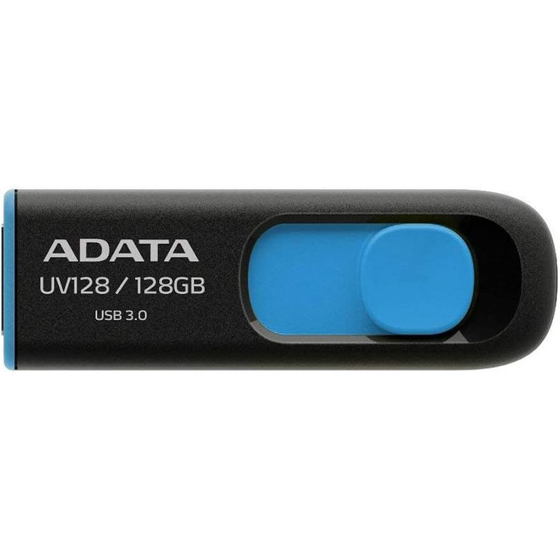 DashDrive UV128 یک فلش مموری با طراحی کشویی و باریک است که از سرعت رابط USB 3.0 نیز بهره میبرد. طراحی بدون درپوش این فلش مموری، نگرانی گم شدن درپوش فلش مموری را در شما از بین میبرد و دیگر لازم نیست شما نگران این مورد باشید. رابط USB 3.0 قابلیت انتقال دوکاناله دارد و قادر است سرعت خواندن فلش مموری را حداکثر تا 90 و نوشتن را حداکثر تا 40 مگابایت بر ثانیه بالا ببرد و این در حالی است که فلش مموری با رابط USB 2.0 نیز سازگاری کامل دارد. فلش مموری Adata DashDrive UV128 به صورتی طراحی شده تا هنگامیکه شما با آن کاری نداشته باشید رابط USB بهصورت کشویی در داخل بدنه فلش قرار بگیرد تا آسیبی نبیند و در هنگامیکه شما به فلش مموری نیاز داشتید به راحتی میتوانید آن را بهصورت کشویی به حالت استفاده دربیاورید. طراحی بدنه مات این فلش مموری، ضد خش و ضد گرد و خاک بودن را برای آن به ارمغان آورده است. فلش مموری UV128 در دو رنگ مشکی_آبی و مشکی_زرد طراحی و تولید شده و در دسترس قرار دارد. در انتهای این فلش مموری یک شیار طراحی شده است که به شما این امکان را میدهد تا یک بند به انتهای فلش مموری متصل نمایید تا حمل و نقل آن آسانتر شود و ضریب گم شدن آن نیز کمتر شود، همچنین میتوانید فلش مموری را به دستهکلیدتان متصل نمایید.