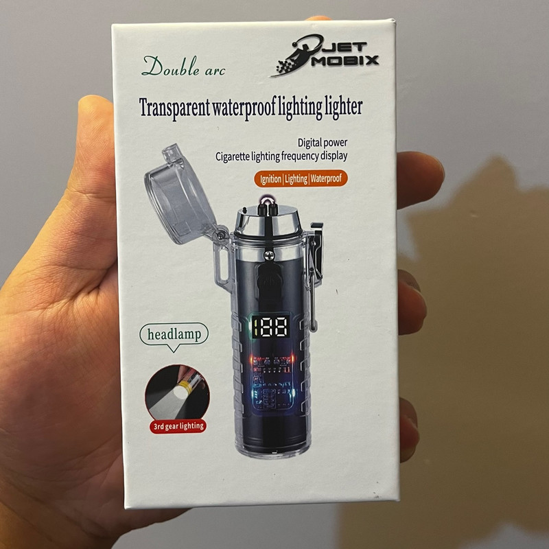 فندک پلاسمایی جت موبیکس یک فندک الکتریکی کاربردی ضد آب همراه با چراغ قوه قدرتمند است که میتوانید با استفاده از آن بدون نیاز به گاز و شعله ، سیگار یا هر چیز دیگری را روشن کنید . این فندک جذاب دارای طراحی شفاف و با نور پردازی RGB و دارای صفحه نمایش مقدار شارژ است که میتوانید به راحتی با کابل شارژ داخل بسته بندی آن را شارژ کنید و از آن لذت ببرید. نکته جذاب این محصول ضد آب بودن آن است که باعث میشود بدون هیچ نگرانی اون رو هر جایی که دوست دارید همراه خود ببرید