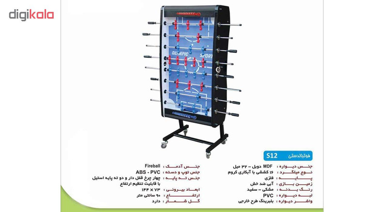 سایر توضیحات | - تاشو - چرخ قفل شو - جنس انتهای پایه بصورت چهارچرخ قفل دار و دو انتهای پایه ی استیل با قابلیت تنظیم ارتفاع - چیدمان بازیکنان: 3-5-3 |