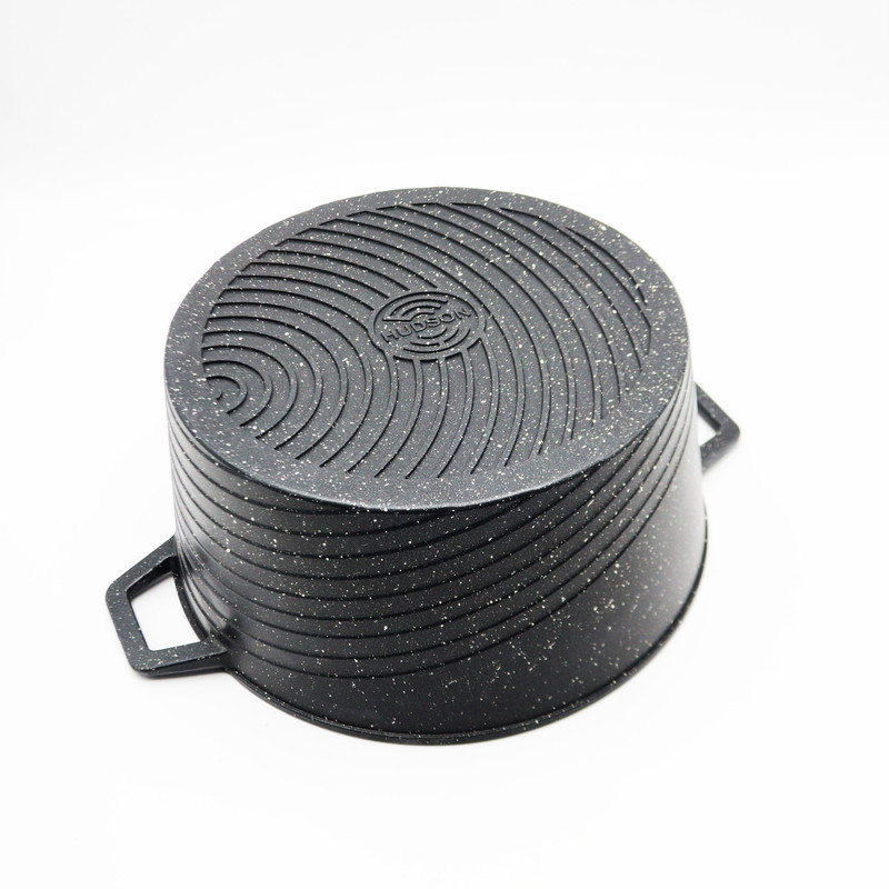 قابلمه های هادسون جنس دسته از جنس بدنه میباشد تمام گرانيت ( داخل ،بیرون ، دسته ) و امکان استفاده در فر و باربکیو .و امکان استفاده در ماشین ظرف شوی و تحمل حرارت تا 350 درجه سانتی گراد را دارد درب پیرکس با رینگ استیل ( تحمل دما تا 700 درجه سانتی گراد ) میباشد