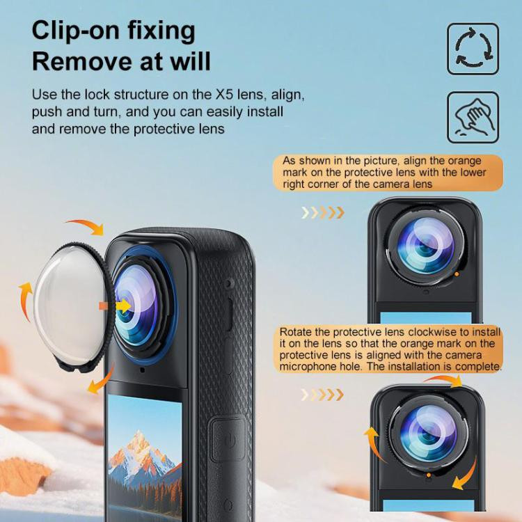 ویژگی چرخشی این قاب باعث میشود نصب و جداسازی آن بسیار آسان باشد و نیاز به جدا کردن مداوم از دوربین نداشته باشید. طراحی دقیق و فیت با ابعاد دوربین Insta360 X5، محافظت کامل لنز را تضمین میکند و هیچ تداخلی با عملکرد دوربین ایجاد نمیکند.