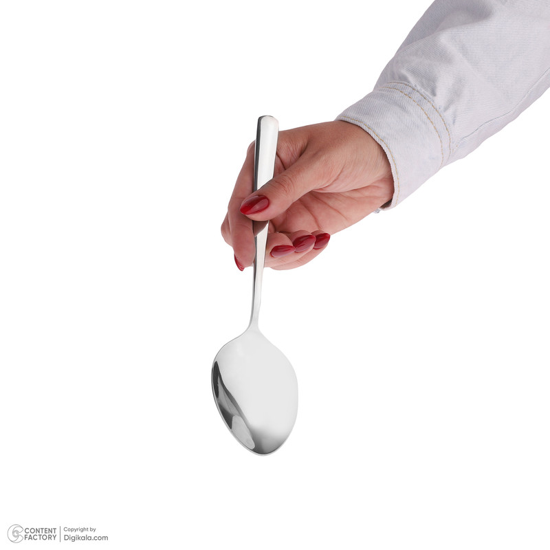 سایر توضیحات | 1 عدد قاشق خورش خوری به ابعاد 20x4.5x0.3 سانتی متر و وزن 70 گرم - استیل18/10ضد زنگ |