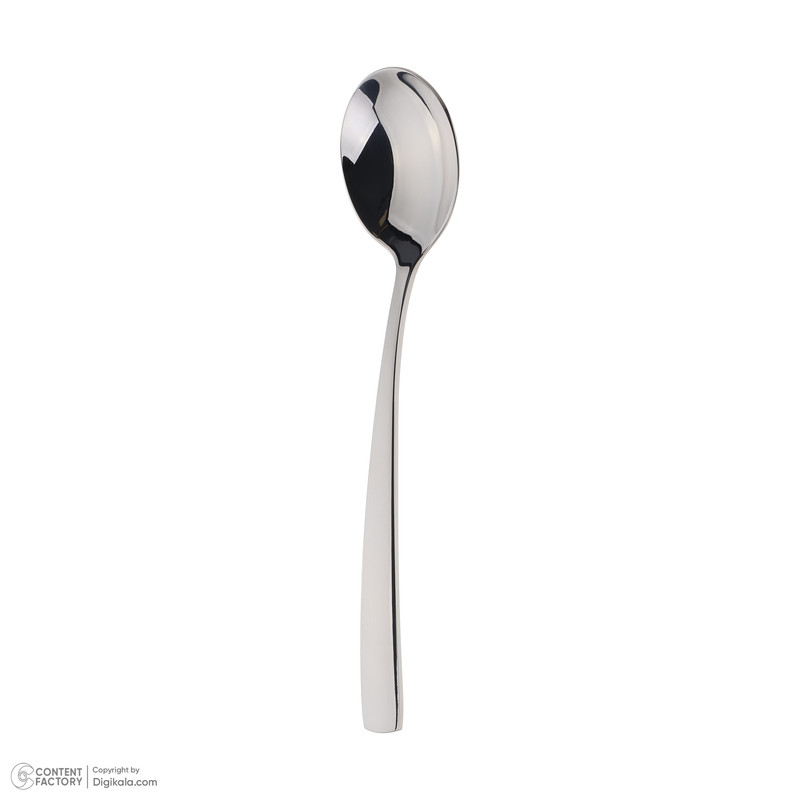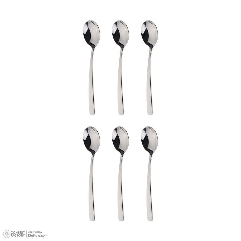 سایر توضیحات | 6 عدد قاشق سوپ خوری به ابعاد 19×4×1 سانتیمتر و وزن 45 گرم/استیل 18/10 ضدزنگ |
