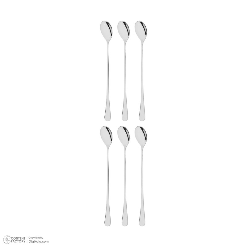 | سایر توضیحات | 6 عدد قاشق شربت خوری به ابعاد 19.5x2.5 سانتی متر و وزن 30 گرم استیل 18/10 ضد زنگ با ضخامت 3/5 میلی متر |