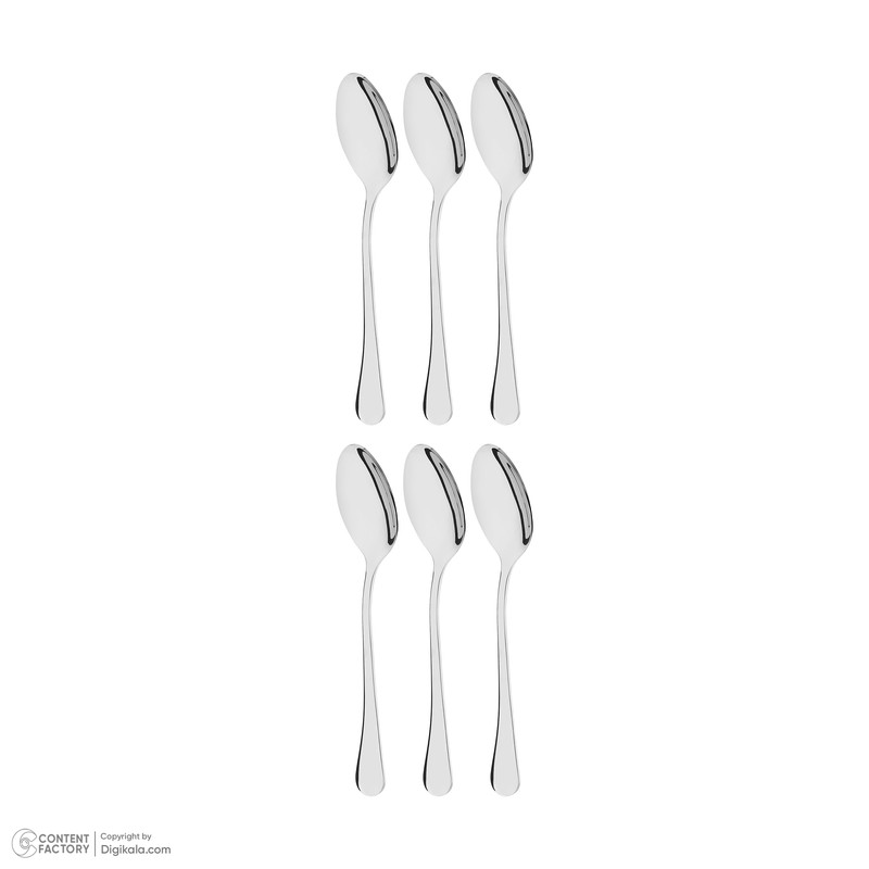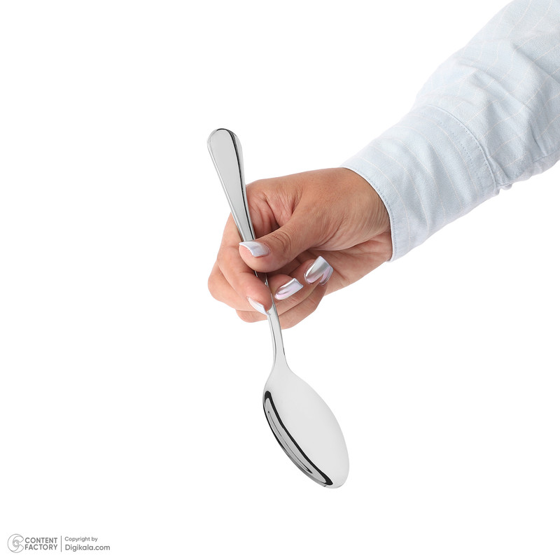 | سایر توضیحات | 6 عدد قاشق غذا خوری لارج به ابعاد 20.5x4 سانتی متر و وزن 70 گرم استیل18/10ضد زنگ با ضخامت3/5میلیمتر |