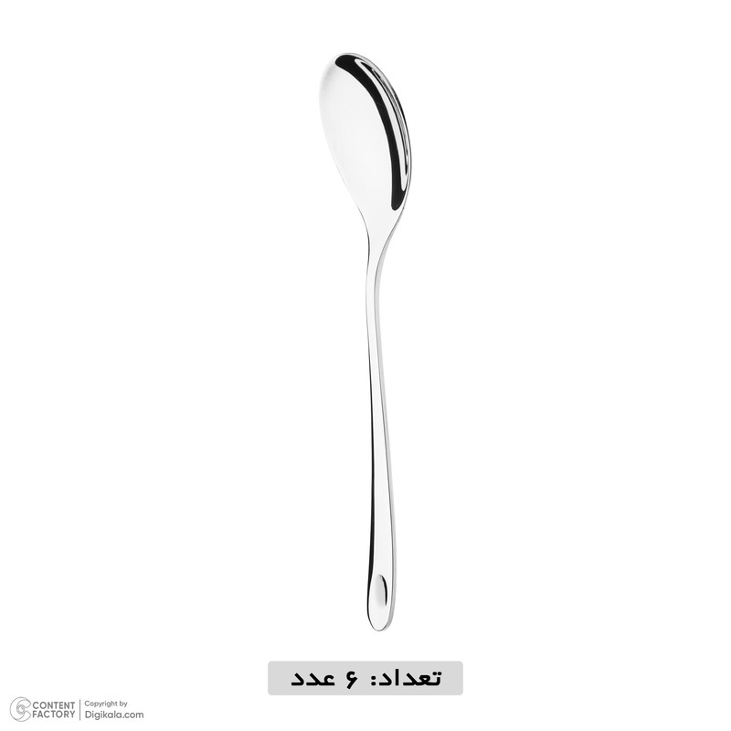 | سایر توضیحات | 6 عدد قاشق مرباخوری به ابعاد 13x2.5x0.35 سانتی متر و وزن 20 گرم - استیل18/10ضد زنگ با ضخامت3/5میلیمتر |