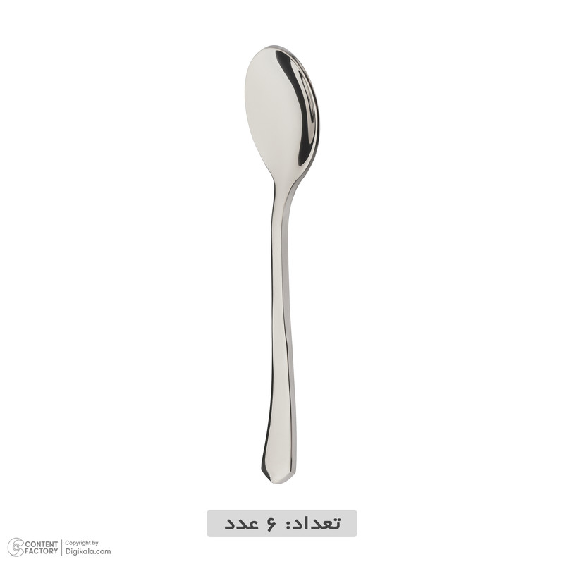 سایر توضیحات | 6 عدد قاشق چای خوری به ابعاد 11x2x0.3 سانتی متر و وزن 20 گرم - استیل18/10ضد زنگ با ضخامت 3 میلیمتر |