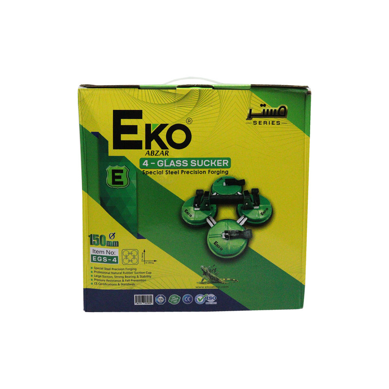 سایر توضیحات - قاپک شیشه اکو مدل چهارقلو - قابل استفاده در حمل آسانتر شیشه با سطح صاف - جنس بدنه فلزی مقاوم و مستحکم - دارای ساختار مکش از آلیاژ پلاستیک فشرده و ساخته شده از بهترین مواد اولیه با ضخامت بالا می باشد - دارای طراحی منحصر به فرد و فوم مکش قابل تنظیم است که باعث افزایش چسبندگی شئ برداشته شده می شود - این قاپک (شیشه گیر) مناسب تمامی سطوح صاف شیشه می باشد. - طول هر ( قطر قاپک ) 150میلی متر - مخصوص انواع شیشه، سنگ و ورق ام دی اف - تحمل وزن تا 200کیلو گرم
