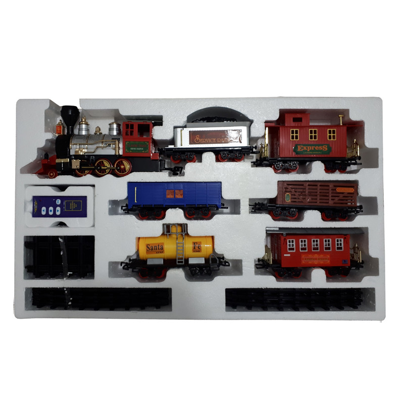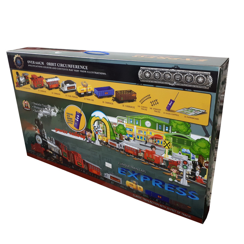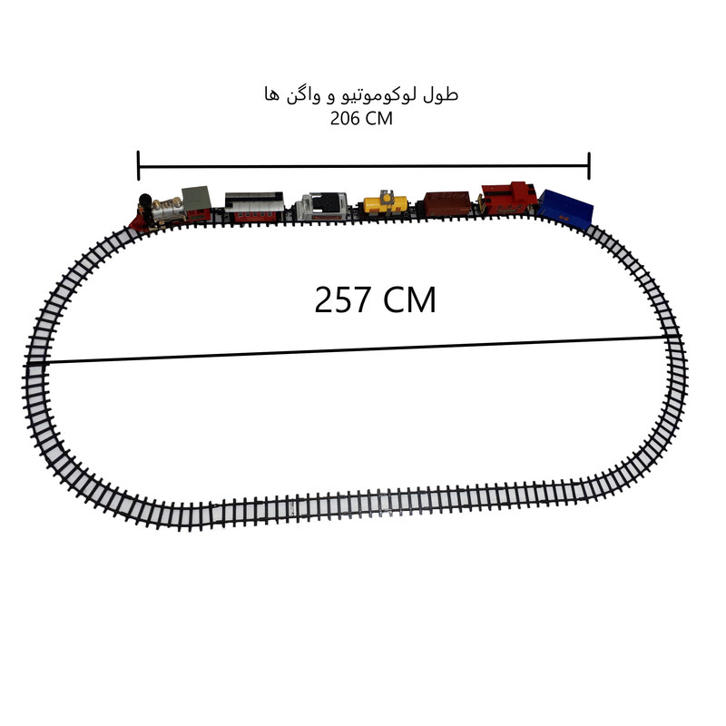 سایر توضیحات | موزیکال دارای چراغ قابلیت هدایت قطار توسط ریموت کنترل دارای استیکر از جنس مقوا هر واگن دارای 8 عدد چرخ می باشد محور چرخ ها متحرک می باشد که باعث تعادل هر چه بیشتر قطار روی ریل میشود ( از ریل خارج نمیشود ) بزرگترین قطار موجود در بازار دارای بسته بندی جعبه ای |