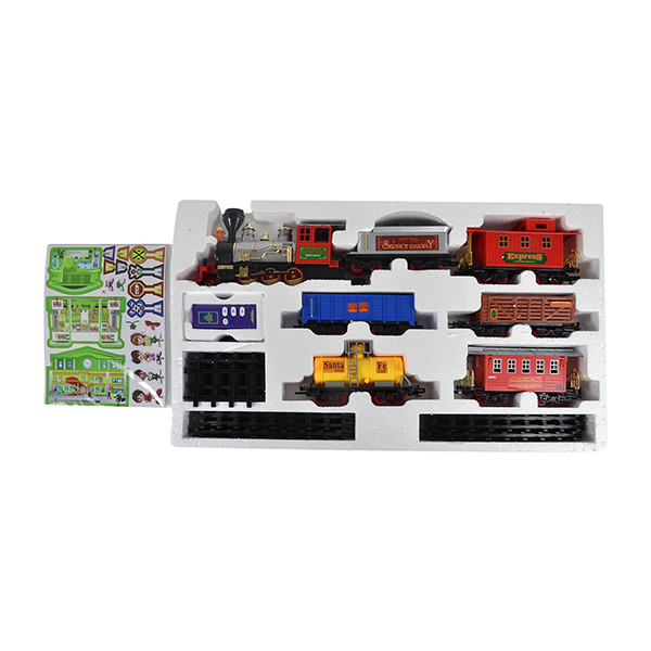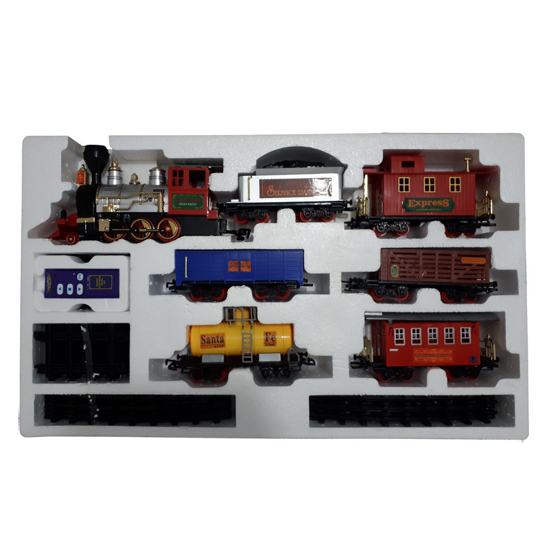 اکشن قطار کلاسیک 20 فوتی. باطری مسیر، صدای قطار واقعی، چراغ جلوی کار. 7 واگن قطار منحصر به فرد، لوکوموتیو، واگن، مناقصه زغال سنگ و واگن مخزن و غیره. کنترل از راه دور برای کار، مونتاژ آسان مسیر، اتصال آسان بین واگن ها.