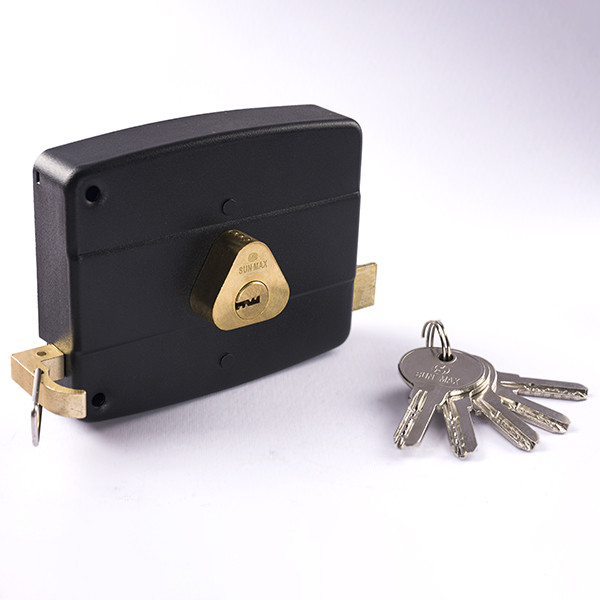 سایر توضیحات | قفل حیاطی مدل 540 شرکت SUN MAX انتخابی ایده آل جهت باز و بسته کردن درب های داخلی ساختمان که بعنوان ورودی اصلی یا ثانویه استفاده می شوند می باشد. بدنه قفل ( Case): (آهن) سیلندر قفل: برنج (مقاوم در برابر خوردگی) زبانه قفل: برنج دسته زبانه قفل: برنج رنگ: مشکی نوع کلید: 5 کلید کامپیوتری |