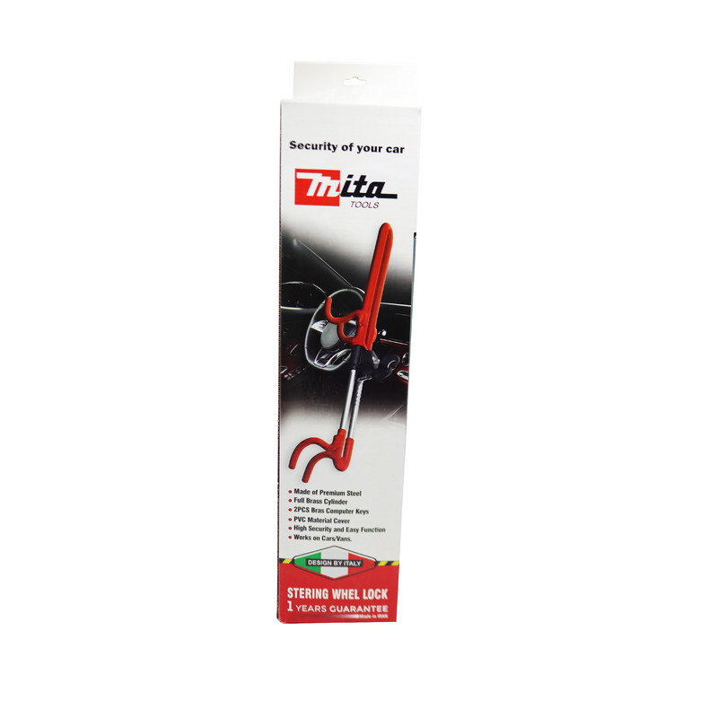 سایر توضیحات | - قفل فرمان میتا - طول : 39 سانتی متر - دارای 2 عدد کلید کامپیوتری - امنيت بالا - سيلندر برنجى ضد اسيد شش ساجمه اى - روكش PVC مرغوب با طول عمر بالا - استفاده از ميلكرد 12 كشيده استيل 1 ضدبرش) استفاده از فولاد شش كوش استيل ) ضد برش) - ﻗلابهاى جامد جديد و بهبوديافته براى استفاده همه كاره با امنيت بيشتر در تماصى خودروها، وانتها و شاسى بلندها |