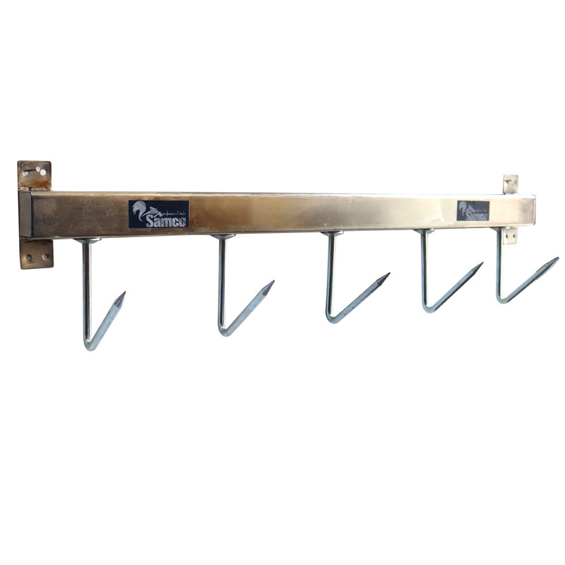 سایر توضیحات | - قلاب اویز 5 شاخ قصابی سامکو - طول : 1 متر - تعداد شاخه ها : 5 شاخ - دارای پایه های فلزی با قابلیت نصب بر روی دیوار - مناسب قصابی و کشتارگاه برای اویزان کردن شقه گوشت گاو و گوسفند - فاصله شاخه ها 20 سانتیمتر - جنس فلزی مستحکم |