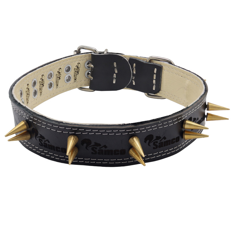 | سایر توضیحات | -قلاده سگ سامکو میخ دار -جنس رویه قلاده از چرم طبیعی گاو -دارای 12 عدد میخ برنجی -دارای حلقه جوشی -طول باز شده قلاده: 72 سانتیمتر -عرض: 45 میلیمتر |