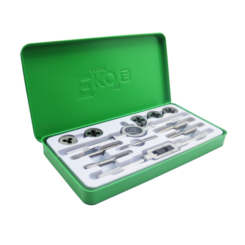 جعبه قلاویز و حدیده 12 پارچه اکو EKO ETD-12 یک ابزار ضروری برای هر کارگاه یا کارخانه است، قلَاویز و حَدیده ابزاری برای تراش دندههای پیچ بر روی موادی مانند فلز، چوب و پلاستیک است.این مجموعه با کیفیت بالا، تنوع بالا و قیمت مناسب، انتخابی ایدهآل برای انجام عملیات قلاویزکاری و حدیدهکاری است.
