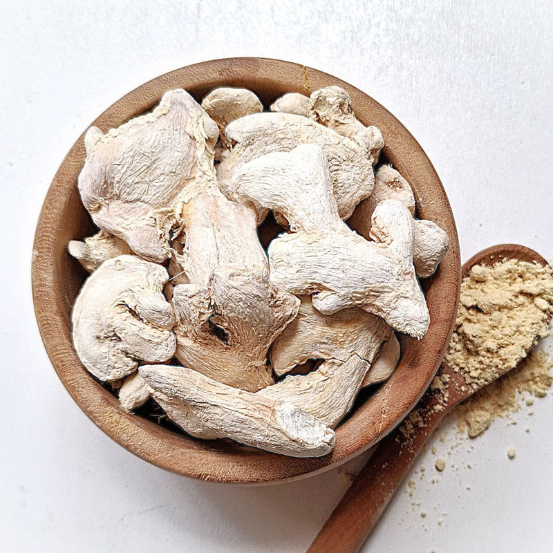 بافت: برشهای خشکشده از ریشهی طبیعی زنجبیل در اندازههای مختلف