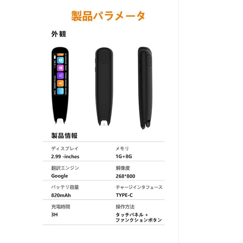سایر مشخصاتقلم مترجم هوشمند مدل S6 Pro ۱. (ترجمه صوتی آنلاین ۱۳۴ زبان) این محصول که جدیدترین فناوری تشخیص صدا و تشخیص اسکن را ترکیب می‌کند، از موتورهای ترجمه چندگانه برای پشتیبانی از ترجمه صوتی ۱۳۴ زبان هنگام اتصال به شبکه استفاده می‌کند. ۲. 【ترجمه اسکن آفلاین ۱۲ زبان و ترجمه اسکن آنلاین ۶۰ زبان】 این محصول همچنین از ترجمه اسکن ۱۲ زبان به صورت آفلاین (چینی ساده‌شده/چینی سنتی/کانتگویی/انگلیسی/آلمانی/اسپانیایی/فرانسوی/ایتالیایی/ژاپنی/کره‌ای/پرتغالی/روسی) پشتیبانی می‌کند. می‌توانید بدون اتصال به شبکه از آن آزادانه استفاده کنید. امکان اسکن ۲۰ کلمه در ثانیه وجود دارد، با دقت تشخیص اسکن و دقت ترجمه می‌تواند به ۹۹٪ برسد. ۳. [انتخاب متن/کتابچه لغات] این محصول مجهز به فناوری ترجمه کتابخانه صوتی آفلاین است، بنابراین می‌توانید متن را با قلم و بدون نیاز به شبکه و ۳۱ زبان (چینی ساده‌شده/چینی سنتی/انگلیسی آمریکایی/چکی انگلیسی/دانمارکی/هلندی/فنلاندی/فرانسوی/آلمانی/یونانی/مجارستانی/ایتالیایی/ژاپنی/کره‌ای/نروژی/نروژی. لهستانی/پو) اسکن کنید. می‌توانید متن را به زبان‌های توتوگی/روسی/اسپانیایی/سوئدی/ترکی و غیره مرتب و ترجمه کنید. کلمات خام را با یک کلیک به موارد دلخواه خود اضافه کنید و متن را سریع بنویسید. این محصول شامل واژگان دبستان، راهنمایی، دبیرستان، ورودی دانشگاه، آیلتس، تافل، شنبه، جی‌آر‌ای و موارد دیگر است. ۴. صفحه نمایش لمسی IPS جمع و جور ۲.۹۹ اینچی، ضبط هوشمند، تنظیم زبان رابط: این قلم جمع و جور است و دارای صفحه نمایش لمسی IPS ۲.۹۹ اینچی است. اندازه آن ۵.۵ اینچ است. از عملکرد ضبط پشتیبانی می‌کند تا بتوانید در هر زمانی در کلاس یا دفتر ضبط کنید. دارای میکروفون دوگانه با قابلیت حذف نویز با کیفیت بالا است که می‌تواند تا ۳ ساعت دوام بیاورد. این محصول از ۱۲ زبان رابط مختلف (چینی ساده، چینی سنتی، انگلیسی، ژاپنی، کره‌ای، آلمانی، فرانسوی، روسی، تایلندی، اسپانیایی، ایتالیایی، ویتنامی و غیره) پشتیبانی می‌کند. حافظه: ۸ گیگابایت صفحه نمایش: صفحه نمایش IPS 2.99 اینچی وضوح: ۲۶۸x۸۰۰ شبکه: اتصال دوربین: ۲ مگاپیکسل زمان مداوم: ۳.۵ ساعت زمان شارژ: ۳ ساعت تعداد کلیدها: ۳ کلید (کلید پاور، کلید کم و زیاد کردن صدا) بلندگو: ۱ وات ظرفیت باتری: ۸۲۰ میلی‌آمپر ساعت (شامل) ترجمه صوتی (۱۳۱ ترجمه آنلاین) ترجمه اسکن آفلاین و TTS (۱۲ نوع): چینی ساده‌شده، چینی سنتی، کانتونی، انگلیسی انگلیسی، ژاپنی، کره‌ای، فرانسوی، آلمانی، اسپانیایی، پرتغالی، ایتالیایی، روسی گزیده متن (۲۲ نوع آفلاین)