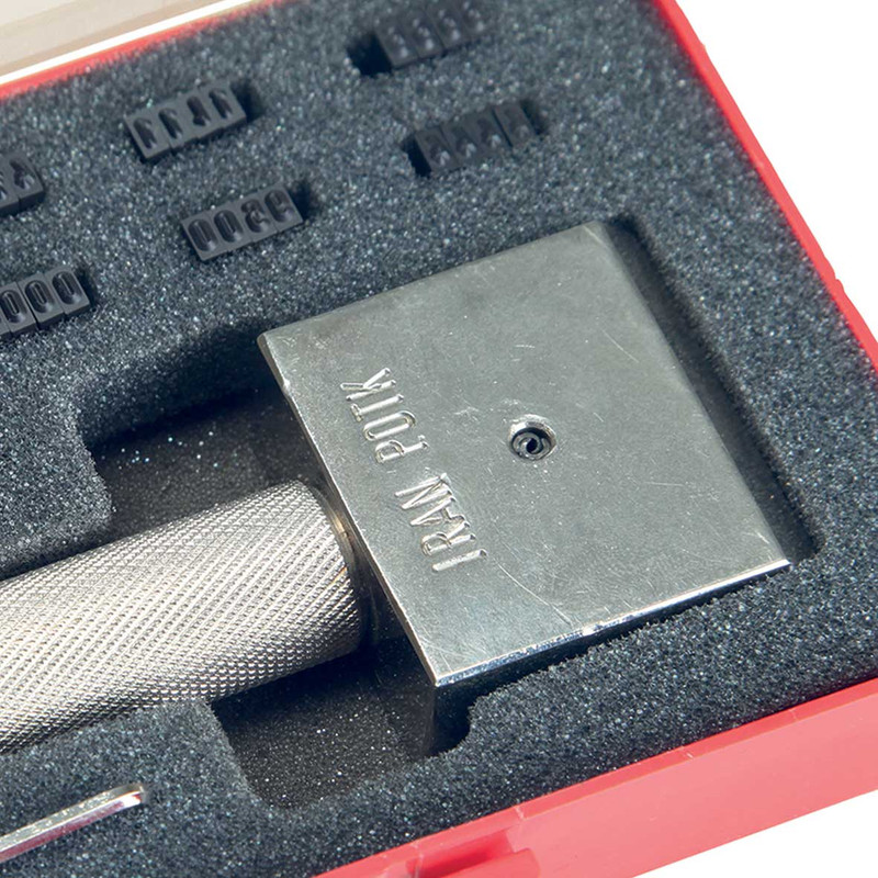 سایر توضیحاتمجموعه تایپ دستی اعداد، حاوی یک نگهدارنده، سنبه های اعداد 0 تا 9 و سنبه فضا ساز، از هر کدام 5 عدد (مجموعاً 55 عدد) و یک آچار آلن می باشد. این مجموعه در جعبه های پلاستیکی ارائه می شود.