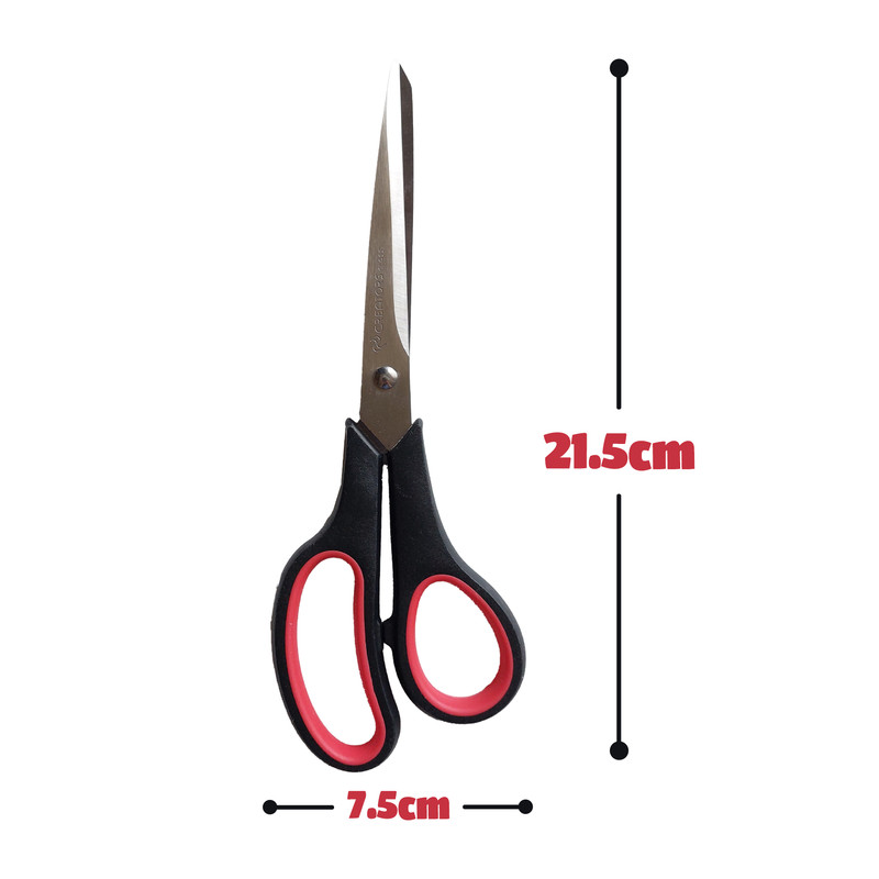 قیچی بزرگ با طول 21.5 سانتی‌متر، گزینه‌ای ایده‌آل برای برش‌های بزرگ و مواد مختلفی مانند کاغذ، مقوا و حتی پارچه در پروژه‌های خیاطی است. تیغه‌های فولادی ضد زنگ و طراحی ارگونومیک حلقه‌های انگشت، این قیچی را به ابزاری راحت و کاربرپسند تبدیل کرده است.