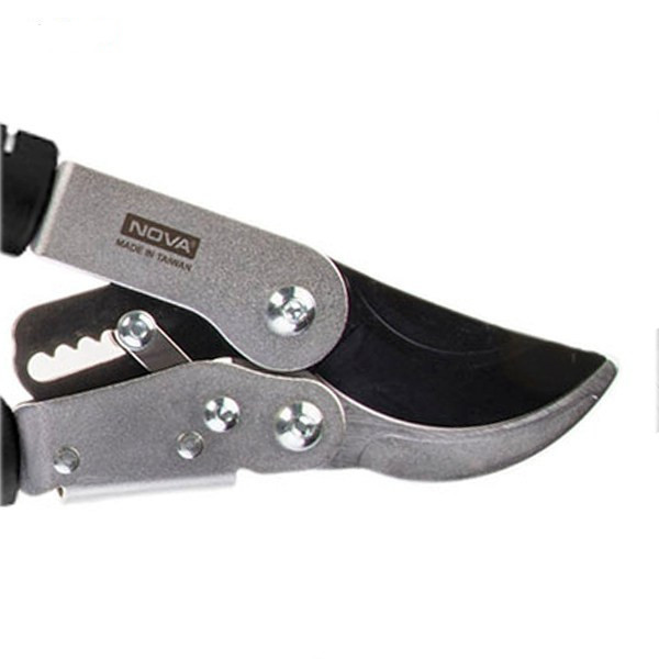 قیچی مدل «NTS2371»، نمونهای از قیچیهای شاخهزن است که توسط شرکت «نووا» (Nova)به بازار عرضه میشود. یکی از راهکارها برای بریدن شاخههای درختان استفاده از قیچیهای شاخهزن است. تیغهی این قیچی بسیار برنده است و بهراحتی شاخهی درختان را برش میدهد. با توجه به فرم ساخت دستههای قیچی، میتوانید شاخههایی را هم که در ارتفاع بالاتر قرار دارند، برش دهید. به کمک قیچی شاخهزن مدل NTS2371 میتوانید شاخههایی تا قطر 50 میلیمتر را برش دهید. تیغههای این محصول از فولاد کربنی ساخته میشوند و مقاومت بالایی در برابر فشار و خوردگی دارند. این قیچی دارای دو دستهی از جنس پروفیل آلومینیومی ساخته میشود. طول دستههای این ابزار 58 سانتیمتر است. نگهداری از گیاهان، نیازمند به داشتن اطلاعات در خصوص امور باغبانی و تهیه وسایلی است که با استفاده از آنها بتوانید به باغ یا باغچهی خود رسیدگی کنید. یک نهال چه درزمانی که در داخل گلدان است و چه موقعی که در باغچه یا باغ کاشته میشود، نیاز به رسیدگی مداوم دارد. پس از رشد نهال و تبدیلشدن آن به درخت، رسیدگی و هرس کردن آن باید موردتوجه قرار گیرد. بریدن شاخههای زائد در شادابی و طراوت درخت تأثیر بسیار زیادی دارد. عدم رسیدگی بهموقع به درخت، موجب ناآراستگی و حتی توقف رشد صحیح آن میشود. نووا نمونههای متعددی از ابزار باغبانی را عرضه کرده که قیچی شاخهزن NTS2370 یکی از آنها است. این محصول با تیغههایی از فولاد کربنی شباهت بسیار زیادی به مدل NTS2370 دارد تنها تفاوت این دو محصول نووا در نوع دستههای آنها است. دستههای مدل NTS2370 تلسکوپی است ولی دستههای NTS2371 به صورت ساده ساخته میشود.