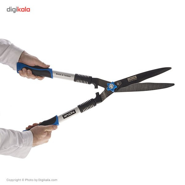 هرس بوتههای انبوه مانند شمشاد با استفاده از قیچیهای شمشادزن امکانپذیر است. محصولی که مشاهده میکنید یکی از این قیچیها است و با عنوان NTS2380 توسط یکی از تولیدکنندگان داخلی تولید میشود. این محصول دارای تیغههایی بسیار برنده است که از جنس مرغوبی ساخته میشوند. دستههای این ابزار فلزی و بسیار سبک هستند. ابعاد و وزن در نظر گرفتهشده برای این محصول مطابق با استانداردهای قیچیهای شمشادزن است. مدل NTS2380 ابزاری است که از آن برای مرتب کردن و شکل دادن به بوتههای شمشاد استفاده میکنند. البته این ابزار زمانی کارایی خود را بهطور کامل، زمانی نشان میدهد که بوتههای شمشاد تا حد لازم رشد کرده باشند. این قیچی دارای تیغههایی از فولادی هستند و طول تیغهها 23 سانتیمتر است. روی تیغهها پیچ مخصوصی برای تنظیم فشار بین دو تیغه قرار دارد. دستههای این محصول هم از لولههای آلومینیومی ساختهشده که در محل قرار گرفتن ابزار، روکش لاستیکی روی لوله را پوشانده است. این قیچی با ابعاد 230 × 630 سانتیمتر و وزن تقریبی 1 کیلوگرم ساخته میشود.