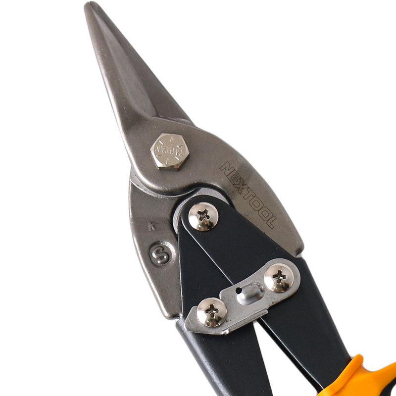 قیچی ورق بر، همانگونه که از اسم آن پیداست، نوعی ابزار دستی ایدهآل جهت برش ورقهای فلزی، ورقهای UPVC ، حلقههای سیمی و برش آلومینیوم است. بعلت سختی برشهای مایل به سمت راست و یا سمت چپ در برشکاری ورقهای فلزی، قیچیهای ورق بر به سه نوع برش مستقیم، برش راست و برش چپ تقسیم بندی میشوند. قیچی ورقبر NEXTOOL مدل NT2905 یکی از قیچیهای با کیفیت جهت برش ورق در جهت مستقیم بوده است که با رنگ زرد از بقیه قیچیهای ورق بری متمایز شده است. افراد راست دست و چپ دست نیز بطور کل از این قیچی جهت برش ورقهای فلزی استفاده مینمایند. سایز این قیچی 250 میلیمتر است. این قیچی دارای فکهای سختکاری شده ( فولادی ) و ساخته شده از آلیاژ کروم مولیبنیوم (CR-MO) است تا عمر و مقاومت این قیچی درمقابل برش ورقهای فلزی افزایش یابد. دسته این قیچی خوش دست و ارگونومیک بوده و همچنین دارای روکش نرم جهت جلوگیری از عرق کردن دست به مدت طولانی و نیز جلوگیری از لغزش قیچی ورق بر در داخل دست هست. بر روی این قیچی یک قفل کن نیز تعبیه شده است تا در زمان عدم کار با این قیچی جهت افزایش ایمنی، براحتی بتوان آن را قفل نمود. طراحی بدنه این قیچی به نحوی است که با حداقل فشار بتوان حداکثر برش بر روی ورقهای فلزی را بدست آورد تا در مصرف انرژی کاربر صرفهجویی شود. با داشتن قابلیت فنریت بر روی دستهها، پس از هر برش، دسته به حالت بازشده برمیگردد تا هنگام برش، کاربر مجدد فقط فشار را بر روی دسته ایجاد نماید و دیگر نیازی به صرف انرژی برای باز نمودن دستهها ندارد. این قیچی دارای استاندارد GS و TUV جهت افزایش اطمینان کاربر از این کالا است. این قیچی ساخت کشور تایوان و دارای استاندارد بین المللی ISO9001:2000 و استاندارهای ANSI / ASME B107 .16-1998 & DIN 6438/11.71 در اروپا هست.