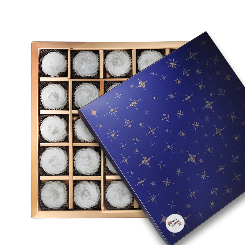 این محصول شامل 20 عدد نبات شاین است . نبات شاین دار همون نبات سفید معمولی است که فرایند پخت طولانی تری را طی کرده .....این محصول بعد از ثبت سفارش آماده و دقیقا با همین بسته بندی ارسال میشود .