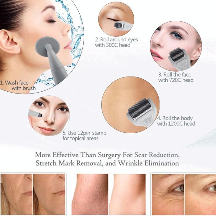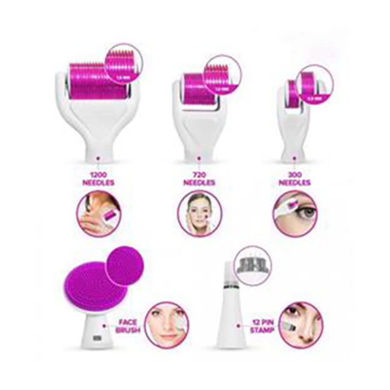 درمارولر  6در 1  با سوزن‌هایی از جنس تیتانیوم بهترین راه حل برای افزایش کلاژنسازی، جوانسازی و جلوگیری از پیری، شلی و چین و چروک پوست و سایر مشکلات پوستی مانند از بین برنده و جلوگیری از چین و چروک، درمان جای جوش و اسکار،کشیدگی‌ها و خطوط پوستی،از بین برنده سلولیت، کیسه و تیرگی زیر چشم، لکه‌های تیره، جای بخیه و ... است.درمارولر 6 در 1 اسکیناوو شامل 4 سری در سایزهای مختلف،دسته سفید رنگ،ظرف مخصوص ضد عف...