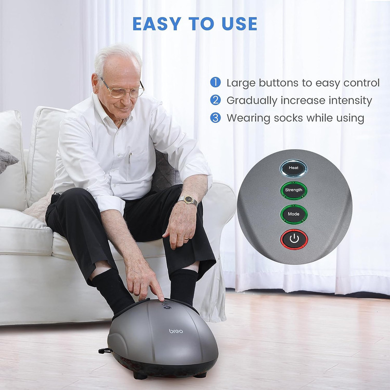 | سایر توضیحات | ماساژور پا Breo دارای عملکردهای ورز دادن عمیق، فشرده سازی، خراش دادن، غلتش، گرمایش است. این ماساژور رفلکسولوژی می تواند به تحریک اعصاب و بهبود گردش خون کمک کند تا پاهای دردناک، خسته و دردناک بعد از یک روز کار یا ایستادن را آرام کند. روکش های جداشدنی و قابل شستشو :مجهز به روکش هایی با زیپ که به راحتی جدا می شوند.شدت قابل تنظیم : برای اینکه کاملاً چیزهایی را که نیاز دارید مطابقت دهید .فشرده سازی گرم به دلخواه : گرمای تسکین دهنده برای از بین بردن درد و خستگی.فواید آن شامل شل کردن ماهیچه ها و کاهش تنش، بهبود گردش خون و انرژی و تعادل بدن و اندام ها برای التیام، انرژی بخشی و بازیابی است.از طراحی دقیق گره برای هدف قرار دادن نقاط بازتابی خاص استفاده کنید تا بدن را به حالت عملکرد بهینه برسانید. تحریک سیستم لنفاوی برای سم زدایی ،ماساژور نقاط ماشه ای روی پاها با فشار مناسب، با حرکت دادن جریان خون و مواد مغذی، کانال های انرژی مسدود شده را در سراسر بدن پاک می کند. این منجر به تحریک سیستم لنفاوی و افزایش گردش خون در کل بدن برای سم زدایی می شود.تکنیک های ورز دادن عمیق، تسمه زدن و ماساژ با ضربه زدن. گرههای ماساژ که ریشه در تئوری رفلکسولوژی دارد، برای انجام عناصر مختلف ماساژ مانند ورز دادن عمیق و ضربه زدن طراحی شدهاند تا دقیقاً به هر نقطهای روی پای شما نفوذ کند تا ریکاوری و تسکین عضلات را تحریک کند و اندامها و سیستمهای داخلی را به حالت عملکرد مطلوب برساند. ماساژ با قابلیت گرما : با فن آوری فشرده سازی گرم داخلی که به شما تسکین دهنده گرمای تسکین دهنده پا را ارائه می دهد تا درد و خستگی را از بین ببرد، درد پا را کاهش دهد و به کارآیی بهتر بدن به روشی قدرتمندتر و آرامش بخش منجر شود، سریعتر احیا و انرژی پیدا کنید. |