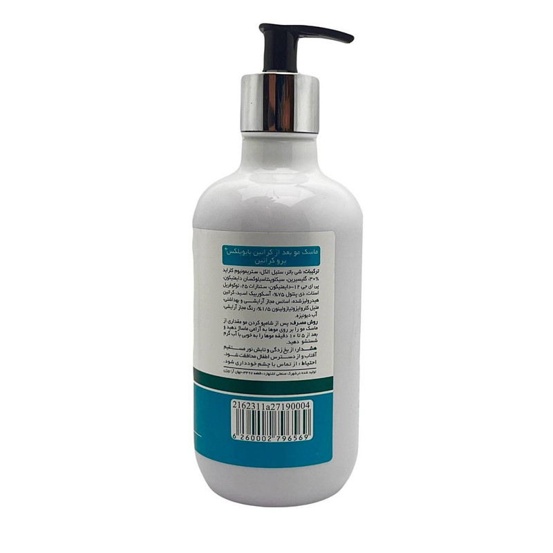 ماسک مو با آبکشی بیوپلکس علاوه بر خواص حاوی روغن آرگان ، مورینگا و ماکادمیا است که خواصی مثل جوان کنندگی مو و نرم کنندگی بالا برای مو و هم چنین دارای خاصیت ضد سفیدی مو هست از سفید شدن مو جلوگیری می کنه و تثبیت کننده رنگ مو هست. این ساخت این محصول در این برند از فرمولاسیون ایتالیای استفاده شده و مواد استفاده شده کاملا طبیعی و ارگانیک هست .