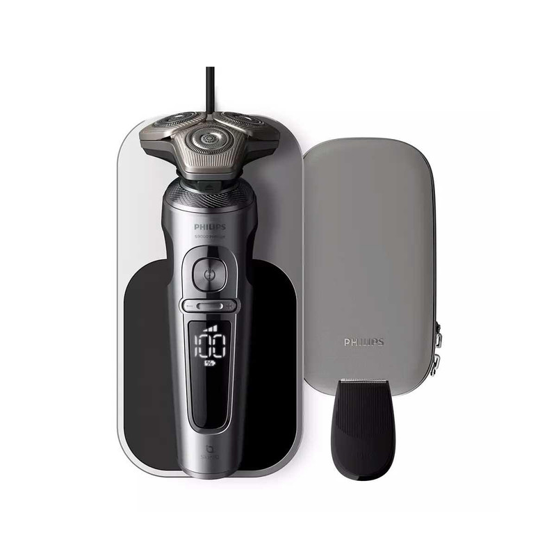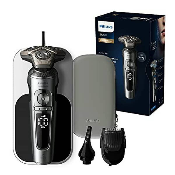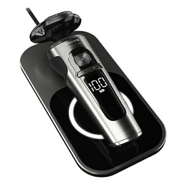 ماشین اصلاح ریش تراش فیلیپس مدل SP9871 - در حال حاضر اخرین مدل کمپانی فیلیپس در سراسر جهان هستش.از جمله تکنولوژی های به کار رفته در این دستگاه می توان به تکنولوژی nanoTech اشاره کرد،که باعث شده تیغه ها دوام بیشتری داشته و بسیار تیز و قوی عمل کنند.تکنولوژی دیگر این دستگاه،superb skincomfort نام دارد،که منظور رنگدانه های فلزی کار رفته در حلقه های دور شبکه است که باعث کم شدن اصطحکاک دستگاه با صورت شما می شود.همینطور میتوان به تکنولوژی Contourdetect شرکت فیلیپس اشاره کرد،که باعث شده سری دستگاه در تمامی جهات حرکت کرده و حتی موهای سخت در زاویه های صورت شما رو به راحتی بگیرد.این دستگاه در 3 حالت :حساس ،طبیعی و سریع قابل تنظیم هست.در این دستگاه شما می توانید با Smartclick به راحتی سیبیل و خط ریش خود را تنظیم کنید و همچنین دارای شانه برای اصلاح خط ریش .مدل SP9871 کاملا ضد آب بوده و شما میتوانید با ژل یا خمیر اصلاح و حتی زیر دوش و یا کاملا خشک از آن لذت ببرید.شرکت فیلیپس در این محصول از تکنولوژی Qi یا همون شارژ بی سیم استفاده کرده،شما با قرار داد دستگاه روی پد Qi شاهد شارژ شدن آن می شوید،و این و اضافه کنم شما میتوانید دستگاه های دیگری که از این تکنولوژی بهره مند هستن رو روی استند زیبا و جذاب فیلیپس شارژ کنید. و مهمترین ویژگی که این مدل رو نسبت به مابقی مدل ها متفاوت کرده،اصلاح ریش بلند اون هستش.شما با این مدل قادر به اصلاح ریش بلند(حتی 7 روزه)هستید،بدون هیچگونه اذیت و سوزشی،این دستگاه تنها ماشین اصلاح ی هست که قادر به اصلاح ریش 7 روزه هست،و این بی نظیره.مخصوصا واسه افرادی که مشغله کاری زیادی دارند و وقت کافی برای اصلاح هروز صورت خود ندارند. دارای سری مجزا برای اصلاح بینی و گوش و ابرو است