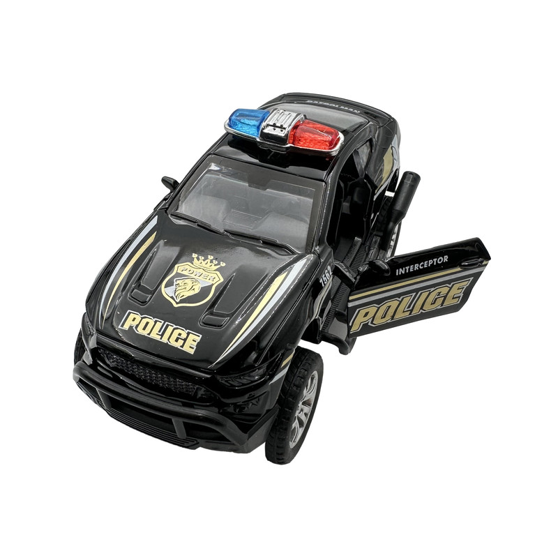ماشین پلیس اسباب بازی شاستی بلند ساخت چین می باشد. این ماشین پلیس فلزی بوده و به صورت عقب کش کار می کند. همچنین 2 درب این ماشین نیز باز و بسته می شود.