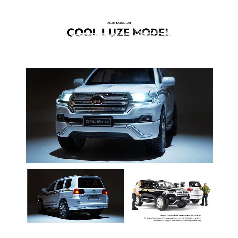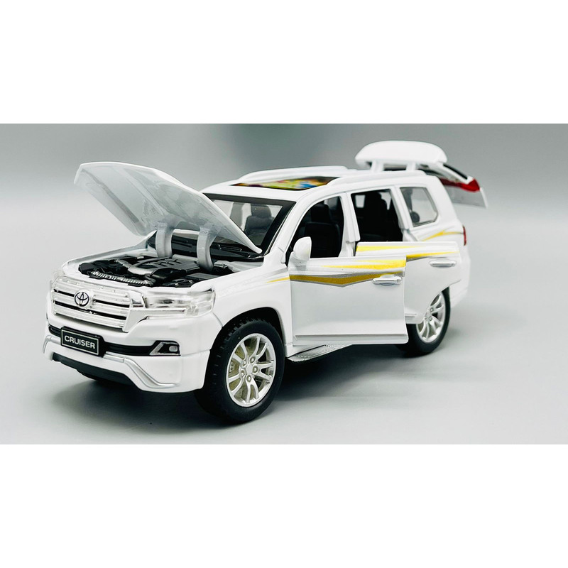ماکت پیش رو تویوتا لندکروز (TOYATA LAND CRUISER ) میباشد که جز‌ء محبوب ترین مدل ها بین کلکسیون دارها و افراد علاقه مند به ماشین است.شرکت چه ژی در طراحی و ساخت این ماشین نهایت دقت و کیفیت را به کار برده و این ماکت به بهترین شکل ممکن دارای جزئیات و رنگ امیزی میباشد.این ماکت از جنس فلزی میباشد و به روش دایکست ریخته گری شده است.درب های جلو،عقب،کاپوت و صندوق آن باز میشود.چراغ های جلو و عقب روشن میشود.ماشین دارای سیستم عقب کش و موزیکال میباشد.