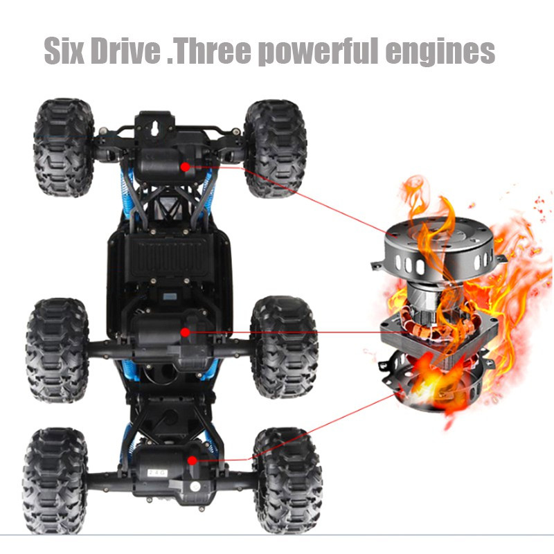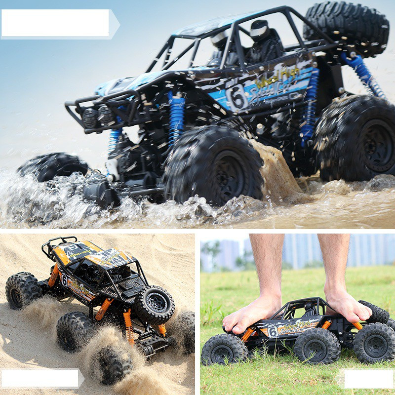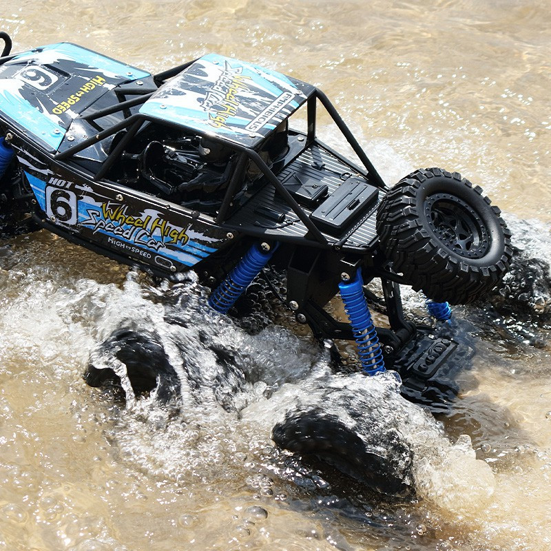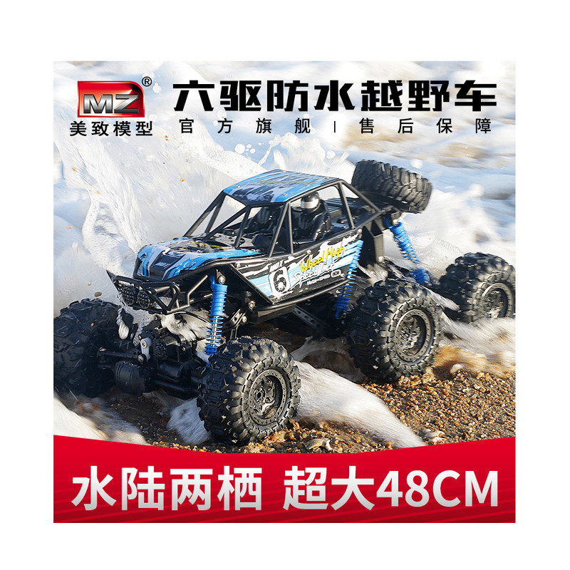 ماشین کنترلی شش چرخ غول پیکر MZ-YY2001 که از محصولات عالی در تیپ ماشین الکتریکی آفرود ( ماشین شارژی ) است که با ویژگی کاملا waterproof ( ضد آب ) لحضات و بازی جذابی را برای شما به ایجاد می کند .ماشین کنترلی شش چرخ غول پیکر MZ-YY2001 که از محصولات عالی در تیپ ماشین الکتریکی آفرود ( ماشین شارژی ) است که با ویژگی کاملا waterproof ( ضد آب ) لحضات و بازی جذابی را برای شما به ایجاد می کند . باتری این ماشین الکتریکی آفرود 9.6 ولت با ظرفیت 1000 میلی آمپر لیتیوم پلیمر می باشد و با قیمتی استثنایی گزینه ای عالی برای هدیه می باشد .جنس بدنه ماشین کنترلی شش چرخ MZ-YY2001 از پلاستیک فشرده PVC است . این ماشین الکتریکی آفرود با سه دیفرانسیلی ( 6WD ) که دارد به شما لذت دو چندانی از بازی را می دهد . همچنین ماشین کنترلی شش چرخ MZ-YY2001 دارای دو سیستم تعلیق جداگانه میباشد .سیستم فنربندی هر چهار چرخ باعث انعطاف در حرکت این ماشین الکتریکی آفرود شده است و شما میتواند در سطوح مختلف از قدرت بالای آفرود این ماشین استفاده کنید و نهایت هیجان رو تجربه کنید . شما میتوانید در کنار دریا ، جنگل ، شن و ماسه و همچنین بر روی آسفالت و خاک از این ماشین شارژی آفرود مدل MZ-YY2001 استفاده کنید .این ماشین یک ماشین شارژی حرفه ای در کلاس آفرود و صخره نوردی به حساب می آید .ماشین کنترلی آفرود مدل MZ-YY2001 با داشتن باطری 9.6 ولت 1000 میلی آمپر لیتیوم پلیمر و USB شارژ بین مدت 2 الی 3 ساعت شارژ میشود و به شما 20 الی 30 دقیقه زمان بازی و لذت بردن از درایو آفرود این ماشین شارژی حرفه ای می دهد . یک رادیو کنترل ساده اما قدرتمند با همان طراحی همیشگی ارگونومیک با فرکانس 2.4 گیگاهرتز برای این محصول در نظر گرفته شده است. رادیو کنترل دارای برد 150 متر بوده و کلید های تریم اهرم جلو و عقب و دسته فرمان روی آن قرار گرفته . این رادیو کنترل دارای کلیدهایی با دقت بالا بوده که به شما این امکان را می دهد تا به دقیق ترین شکل با سرعت و جهت دلخواه ماشین را هدایت کنید.و همچنین این ماشین پر قدرت میتواند با شیب 48 درجه حرکت کند.