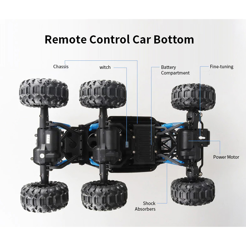 توضیحات ریموت - -منبع تغذیه چهار عدد باطری قلمی برای ریموت کنترل رادیو کنترل ساده اما قدرتمند با همان طراحی همیشگی ارگونومیک با فرکانس 2.4 گیگاهرتز برای این محصول در نظر گرفته شده است. این رادیو کنترل دارای برد 150 متر بوده و کلید های تریم اهرم جلو و عقب و دسته فرمان روی آن قرار گرفته . این رادیو کنترل دارای کلیدهایی با دقت بالا بوده که به شما این امکان را می دهد تا به دقیق ترین شکل با سرعت و جهت دلخواه ماشین را هدایت کنید.