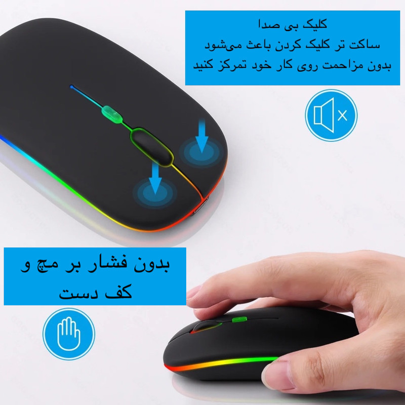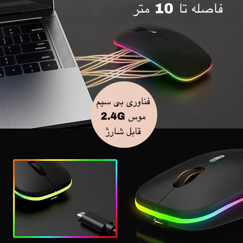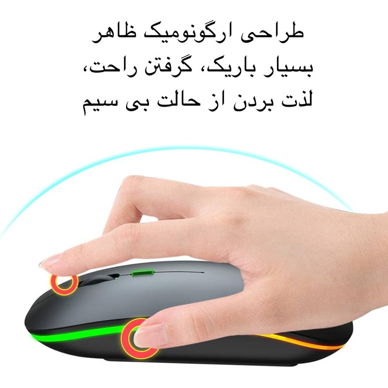ماوس بیسیم در دنیای امروزه، به یکی از ابزارهای ضروری کار با سیستم یا لپ تاپ تبدیل شده است. بازیکنان حرفهای و علاقه¬مندان به بازیهای آنلاین همگی به¬دنبال تجربه یک بازی فوقالعاده و بدون محدودیت هستند.ماوس بی سیم مدل 2.4G+B با ویژگیهای منحصربهفرد خود، یک همراه ارزشمند برای کاربران روزانه است. ماوس بیسیم 2.4G+B به وسیله دانگل USB و بلوتوث به لپتاپ و کامپیوتر متصل میشود. برای شارژ کردن این ماوس از کابل USB که همراه محصول ارائه میشود استفاده کنید. حسگر پیشرفته آن با دقت 800 تا 1600، تضمین کننده دقت بالا و حرکات ظریف در بازیها است. همچنین با طراحی ارگونومیک امکان استفاده طولانی بدون خستگی دست و استفاده از هر دو دست را برای کاربران فراهم کرده است. این ماوس با امکان اتصال بیسیم، به کاربر امکان میدهد به راحتی در فضاهای مختلف از آن استفاده کند و مدت زمان طولانی عمر باطری، یعنی تا 50 ساعت استفاده متوسط، این وسیله را به یک همراه قابل اعتماد برای همگان تبدیل کرده است. از ویژگی های خاص این کالا میتوان به اندازه مناسب به عنوان ماوس همراه برای کیف و کنار لپتاب و همچنین کیفیت بالا و نرمی و روان بودن آن هنگام استفاده اشاره کرد.