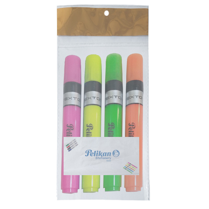 سایر توضیحات | انواع ماژیک هایلایت پلیکان در بسته بندی 4 عددی آویزدار مدل چند رنگ شامل یک عدد ماژیک زرد، یک عدد ماژیک نارنجی، یک عدد ماژیک صورتی و یک عدد ماژیک سبز می باشد |