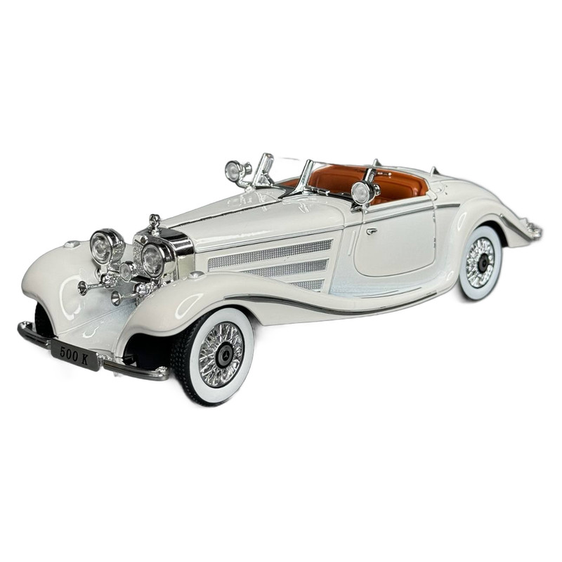 ماکت ماشین مرسدس بنز K500 یکی از زیباترین و با ارزشترین هدیه برای کلکسیونرها و جوانان علاقمند به ماشین های خاص است دارای قابلیت باز شدن درهای ماشین و در موتور و عقب میباشد وبا فشردن روی ماشین صدای زیبای استارت و روشن شدن و ترمزها را بهمراه روشن شدن چراغهای جلو و عقب و با فشردن فرمان صدای بوق و دزدگیر را دارد همچنین فنرهای انعطاف پذیر و چرخش چرخهای جلو به چپ وراست بصورت دستی را داردو سیستم حرکتی آن عقبکش میباشد