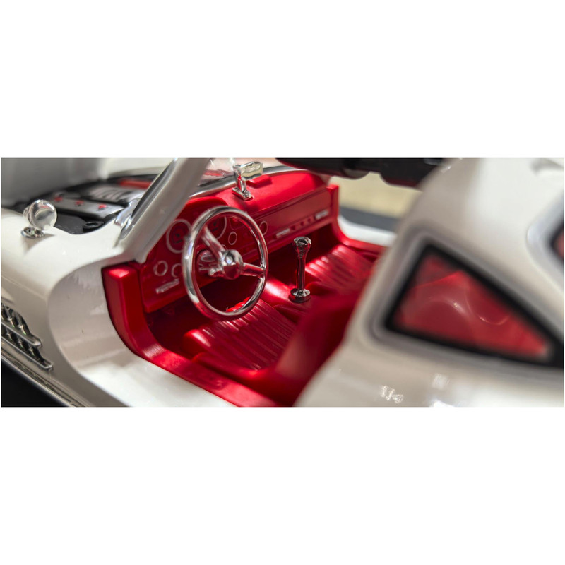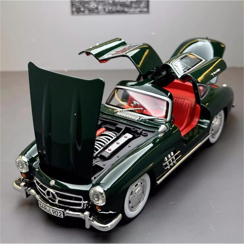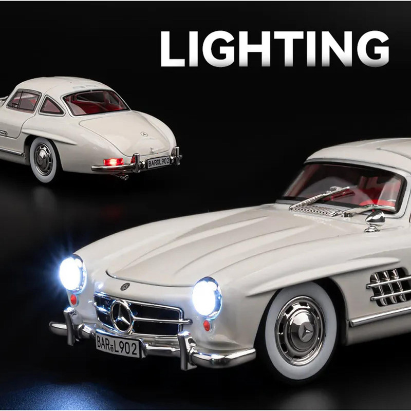 ماکت بنز SL300 (1:24) از ماکت های جذاب و با کیفیت، مخاطبان خود را هیجانزده میکند است که با جنس بدنه فلزی و قابلیت باز شدن کاپوت و دربها و صندوق عقب وبا فشردن روی ماشین صدای زیبای استارت و روشن شدن و ترمزها را بهمراه روشن شدن چراغهای جلو و عقب و همچنین با فشردن فرمان صدای بوق پخش میشود .کالای فوق با کیفیت بالای ساخت و رنگهای جذاب و با رعایت جزئیات بالا توانایی بالایی در جذب علاقمندان ماشینهای فلزی دارد.و مناسب برای کلکسیونرها وعلاقمندان به ماشین های خاص و همچنین بازی کودکان می باشد