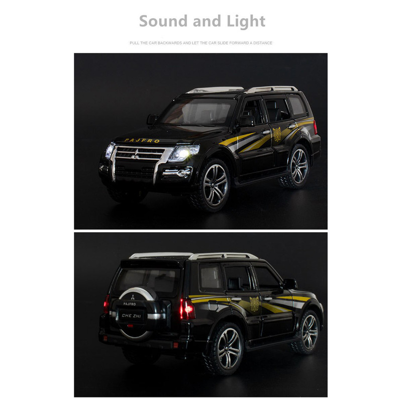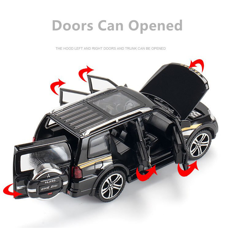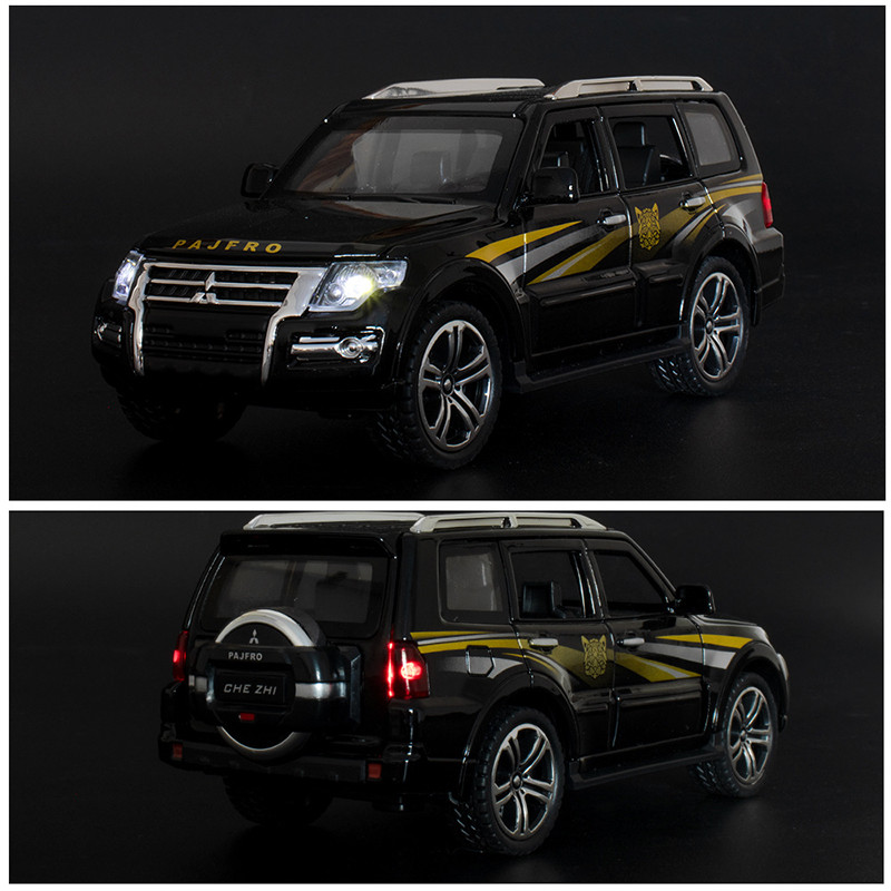 ماکت پیش رو مدل میتسوبیشی پاجرو (MITSUBISHI PAJERO ) میباشد که جزء محبوب ترین مدل ها بین کلکسیون دارها و افراد علاقه مند به ماشین است.شرکت چه ژی در طراحی و ساخت این ماشین نهایت دقت و کیفیت را به کار برده و این ماکت به بهترین شکل ممکن دارای جزئیات و رنگ امیزی میباشد.این ماکت از جنس فلزی میباشد و به روش دایکست ریخته گری شده است.درب های جلو،عقب،کاپوت و صندوق آن باز میشود.چراغ های جلو و عقب روشن میشود.ماشین دارای سیستم عقب کش و موزیکال میباشد.