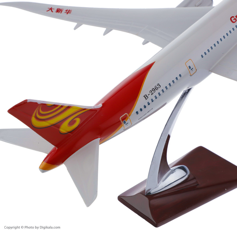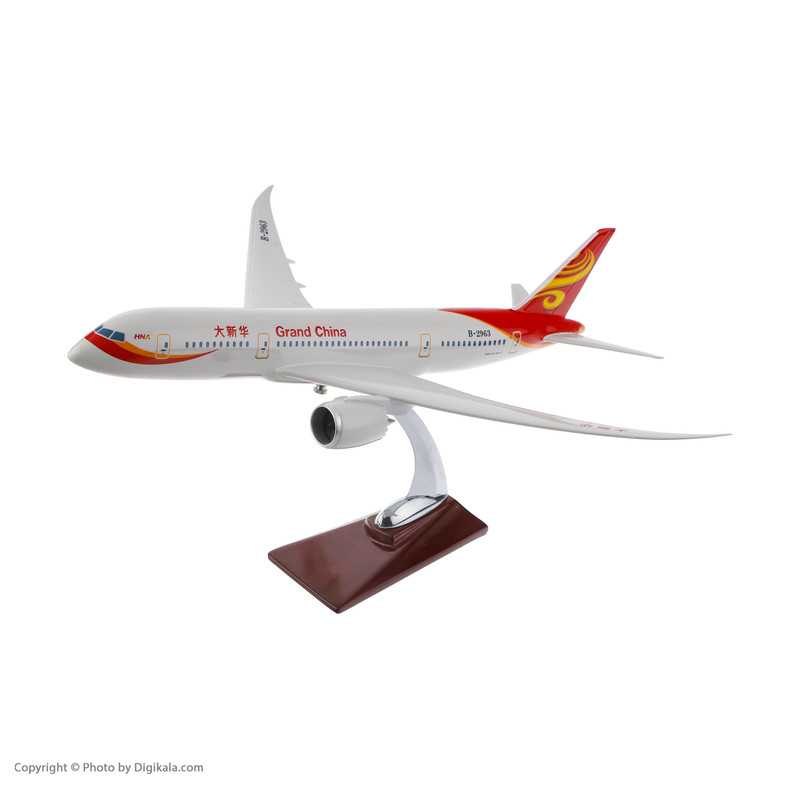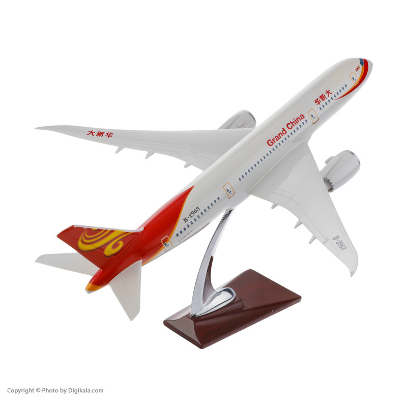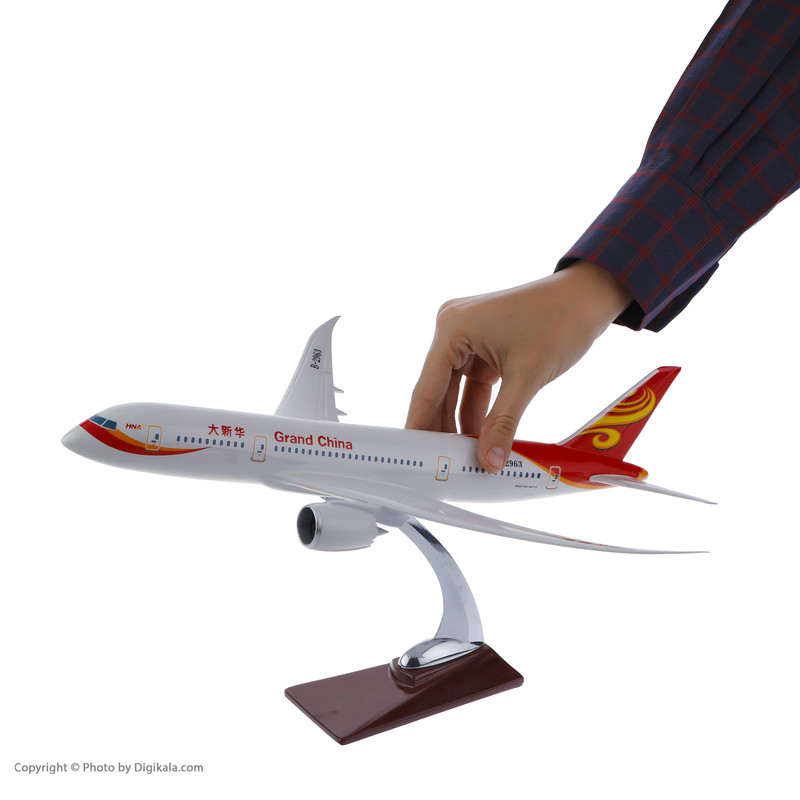 کالای پیش رو ماکت هواپیما بویینگ 787 Grand China چین کد 3572 با کیفیت بالا است. این ماکت در حالتی که روی پایه قرارگیرد ابعادی معادل 40x40x22 سانتی متر خواهد داشت. این هواپیما 846 گرم وزن داشته و در مقیاس 1 به 150 از نمونه واقعی ساخته شده است. دارای جزییات دقیق و کیفیت بسیار بالایی در ساخت می باشد. محصول پیش رو از جنس رزین با روش تولید دایکست بوده و دارای بدنه نسبتا سنگینی است و ساخت کشور چین می باشد. این مدل بر اساس نمونه واقعی طراحی و ساخته شده است. یک پایه زیبا برای این محصول تعبیه شده که شما میتوانید مدل خود را بر روی آن به نمایش بگذارید. این مدل هواپیمای کلکسیونی براساس یکی از هواپیماهای واقعی ساخته شده است. این مدل که با جزئیات بالا و مقیاس بسیار دقیق ساخته شده هدیه ای مناسب برای دوستداران و کلکسیون داران هواپیما میباشد. امروزه شرکت های متنوعی در خصوص طراحی و ساخت ماکت های هواپیما فعالیت دارند. پرداختن به جزئیات و کیفیت بالا برای یک ماکت فاکتور بسیار مهمی محسوب میشود که محصول پیش رو از این نظر در سطح بالایی می باشد. مناسب برای آژانس ها وشرکت های هواپیمایی و شرکت های مرتبط هوایی بوده و همچنین قابل استفاده در منزل، محل کار و... به عنوان دکوری- تزئینی می باشد.