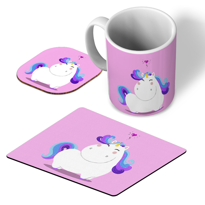 ماگ ترمه طراحان ایده مدل تک شاخ تپل کد cfp1438 همراه با زیر لیوانی و موس پد
