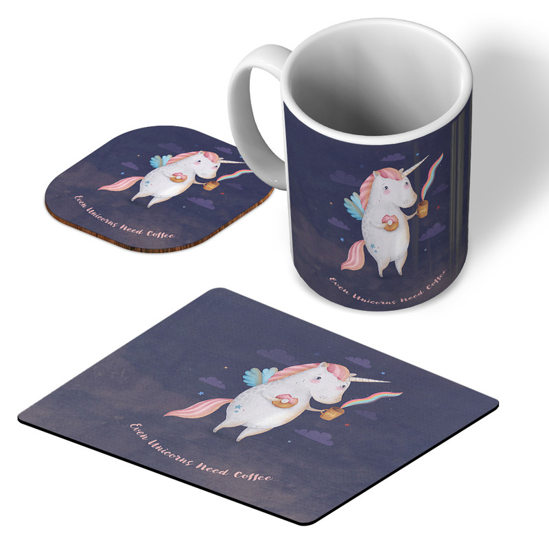 ماگ ترمه طراحان ایده مدل تک شاخ قهوه نوش کد cfp1443 همراه با زیر لیوانی و موس پد
