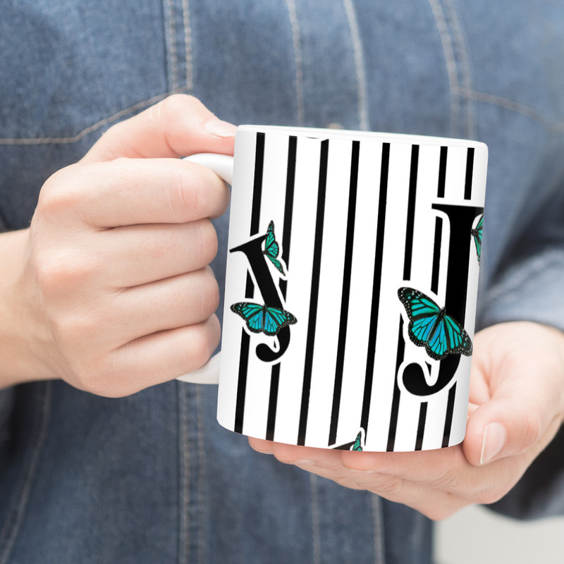 ماگ ترمه طراحان ایده مدل حرف J پروانه ای کد cfp3012