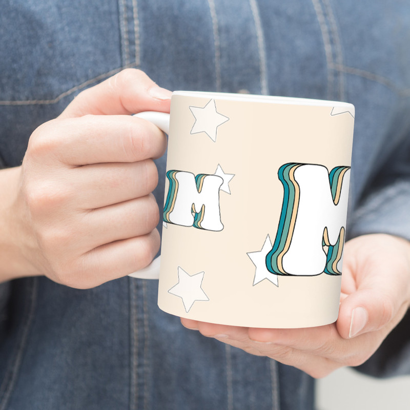 طرح ماگ حرف M رترو