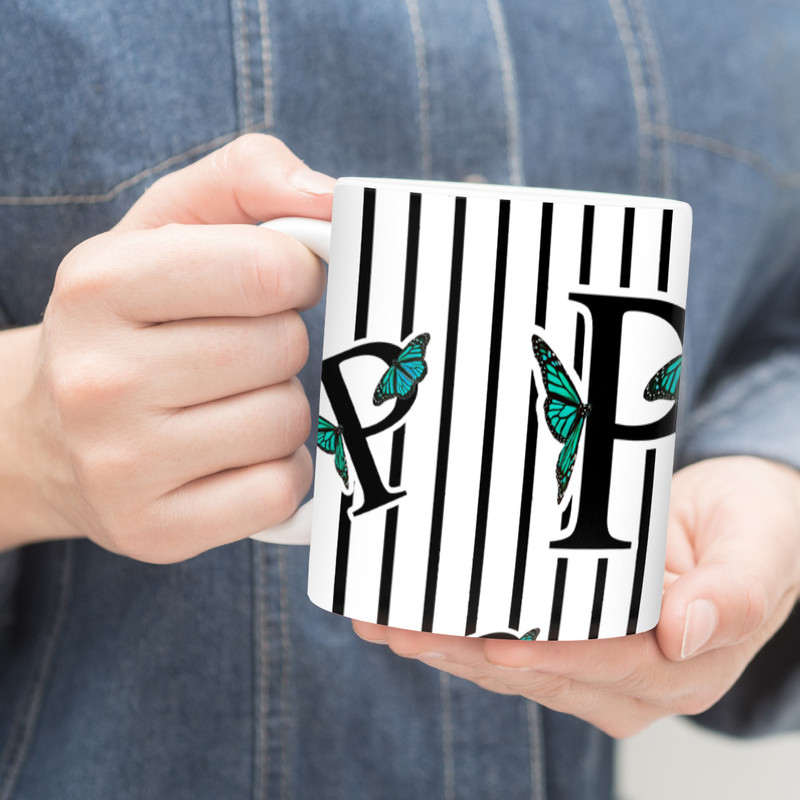 ماگ ترمه طراحان ایده مدل حرف P پروانه ای کد cfp3018