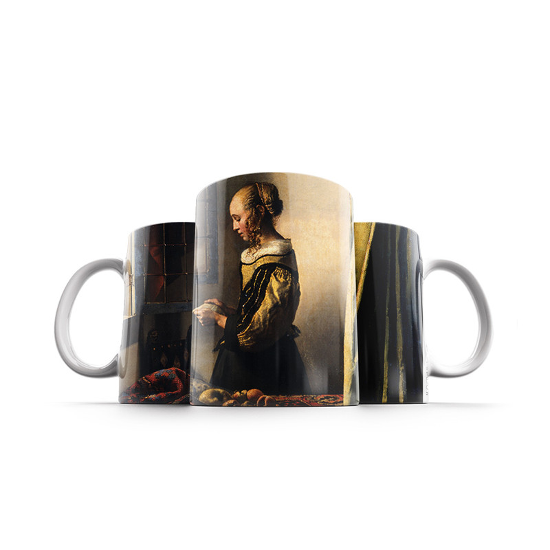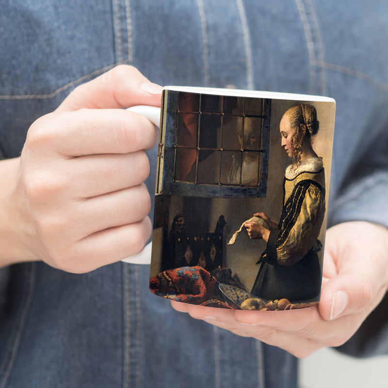 | طرح ماگ | دختری در حال خواندن نامه کنار پنجره از ورمر |